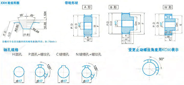 | 標(biāo)準(zhǔn)同步帶寬度 | K | W | G | L22齒以下 | L22齒以上 |