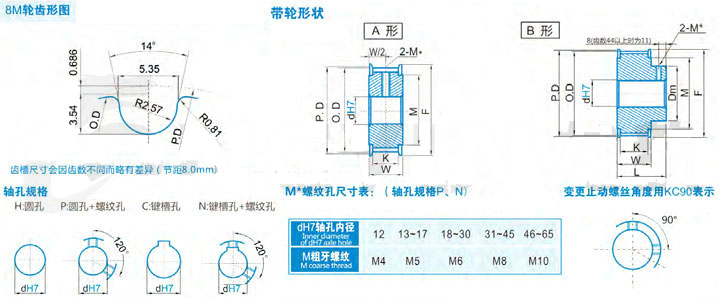 規(guī)格 形狀 節(jié)徑P.D 外徑O.D 擋邊外徑F 擋邊內(nèi)徑M 輪轂直徑Dm 內(nèi)孔dH7