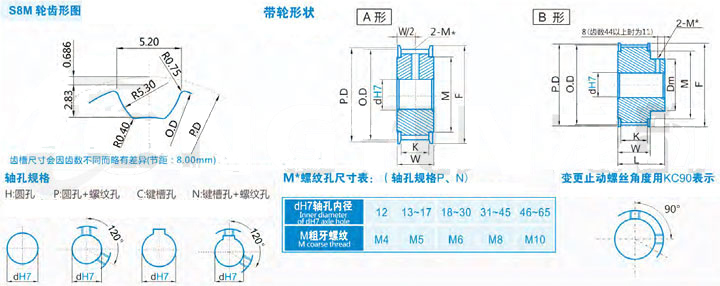規(guī)格 形狀 節(jié)徑P.D 外徑O.D 擋邊外徑F 擋邊內(nèi)徑M 輪轂直徑Dm 內(nèi)孔dH7