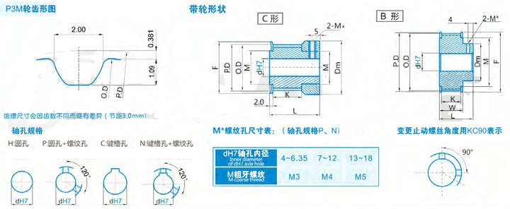 規(guī)格 形狀 節(jié)徑P.D 外徑O.D 擋邊外徑F 擋邊內(nèi)徑M 輪轂直徑Dm 內(nèi)孔dH7