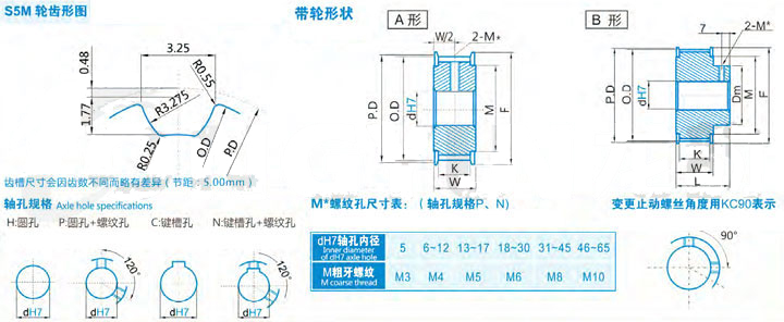 規(guī)格 形狀 節(jié)徑P.D 外徑O.D 擋邊外徑F 擋邊內(nèi)徑M 輪轂直徑Dm 內(nèi)孔dH7